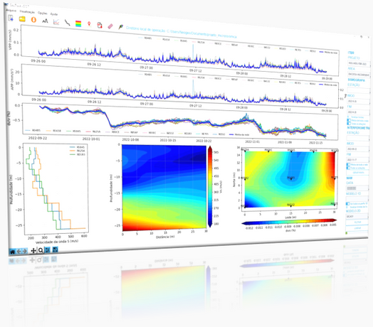 A dinâmica hídrica em estruturas geotécnicas é também uma das preocupações dos especialistas. A medição de perturbações relativas da velocidade sísmica (dv/v) a partir da Interferometria Sísmica de Ruído Ambiente vem sendo explorada como uma metodologia promissora internacionalmente. Uma diminuição da velocidade de propagação sísmica no meio pode refletir uma diminuição da rigidez dos materiais em profundidade e um aumento da pressão dos poros, que pode ser um indicativo de relação com a liquefação parcial ou total da massa de solo, por exemplo.